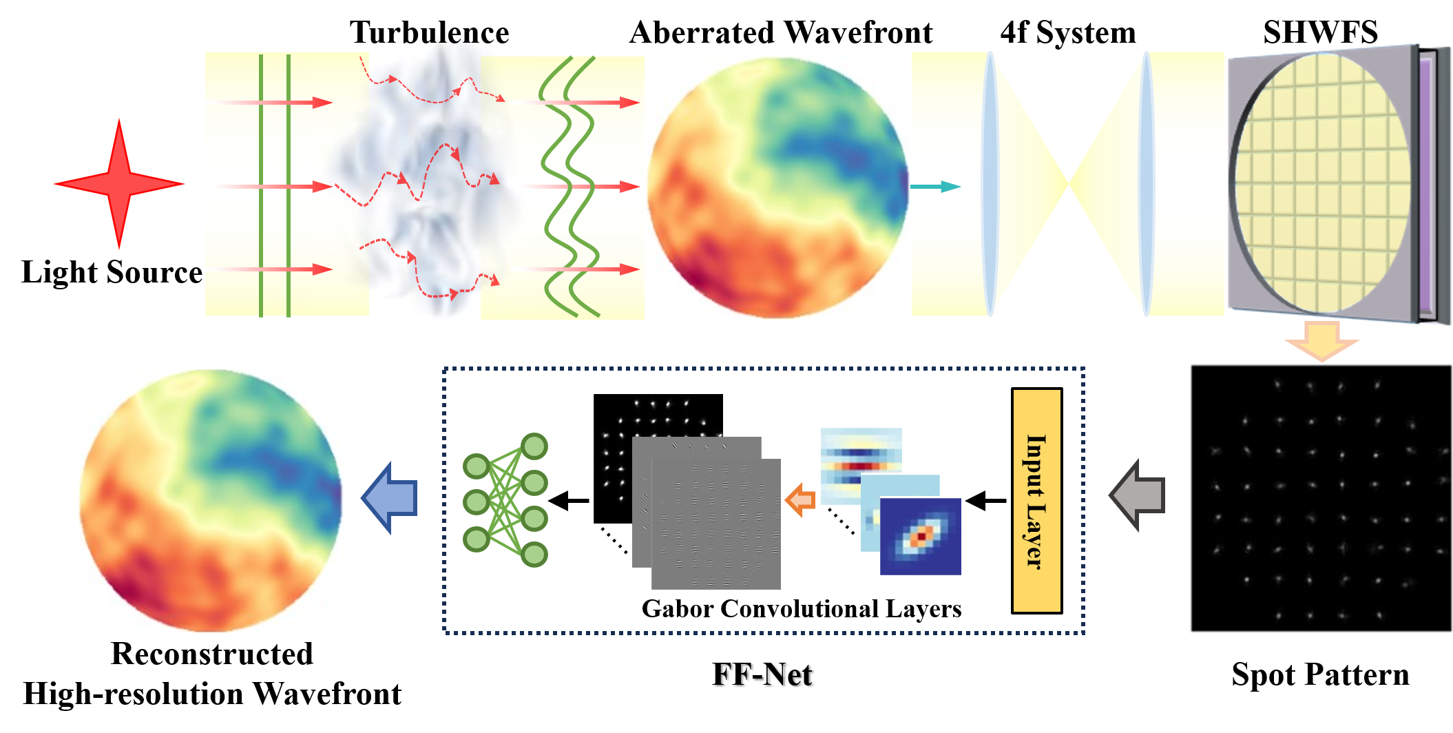 Recently, Prof. Heng Zuo's team at the Nanjing Institute of Astronomical Optics & Technology, Chinese Academy of Sciences proposed a super-resolution wavefront reconstruction method based on a Frequency-domain Filter-based Neural Network (FF-Net, Fig.1).